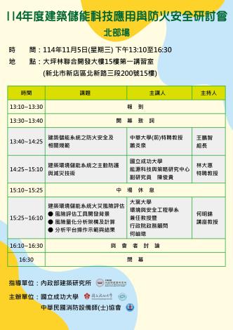 本所「114年度建築儲能科技應用與防火安全研討會」活動